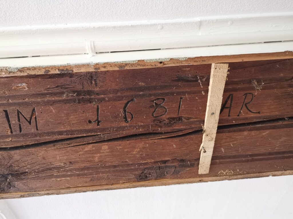 Mit Freude habe ich die Inschrift direkt gefunden. Wir können nun mit stolz sagen im Besitz eines 339 Jahre alten Hauses zu sein.