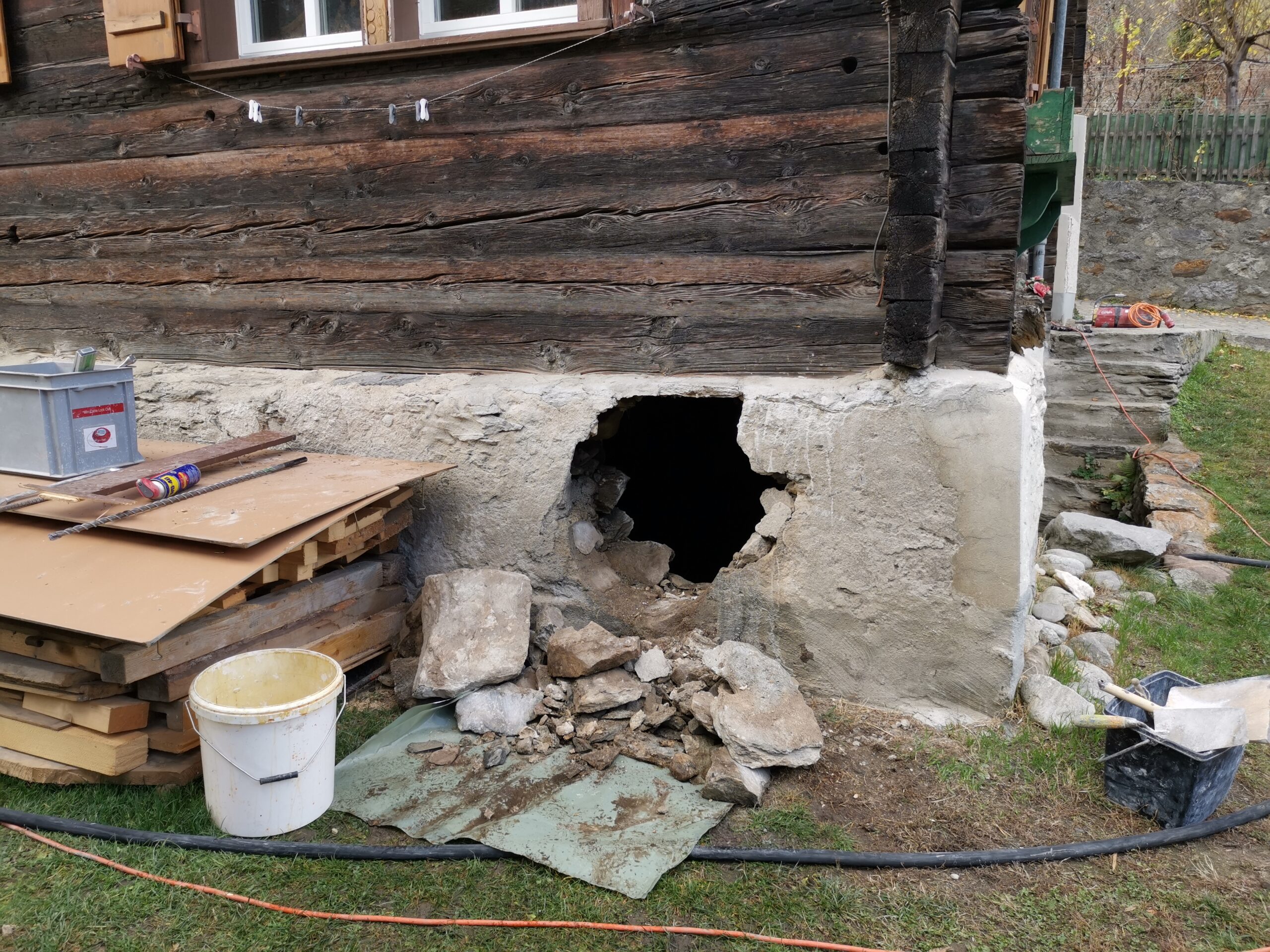 Nachdem die Baubewilligung erteilt wurde, haben wir mit der Bohrung von zwei Löchern in die Südfassade die Baustelle eröffnet.