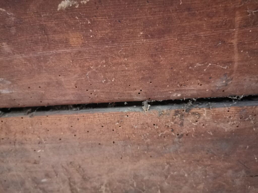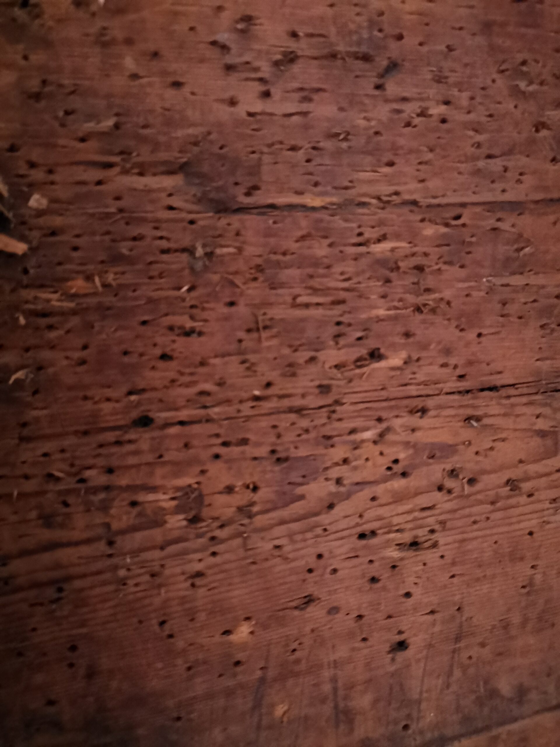 - … und jede menge Spuren von Holzschädlingen 🙁