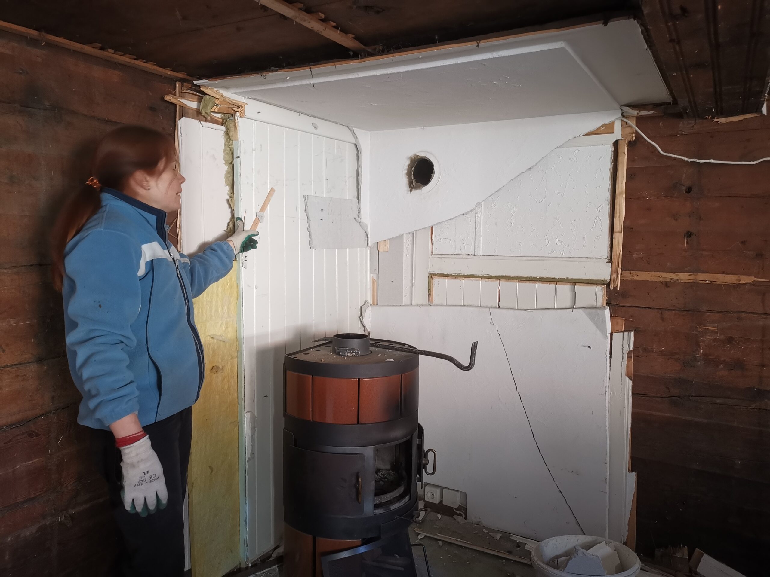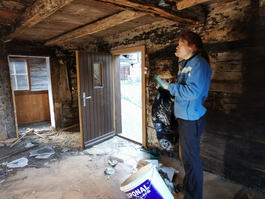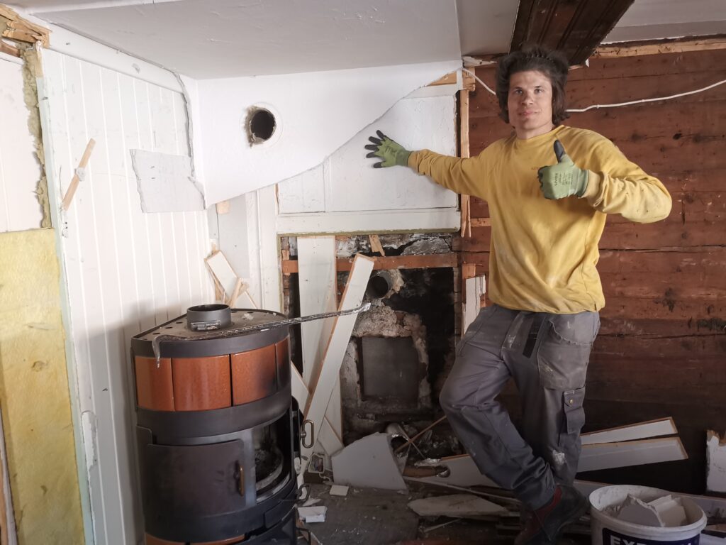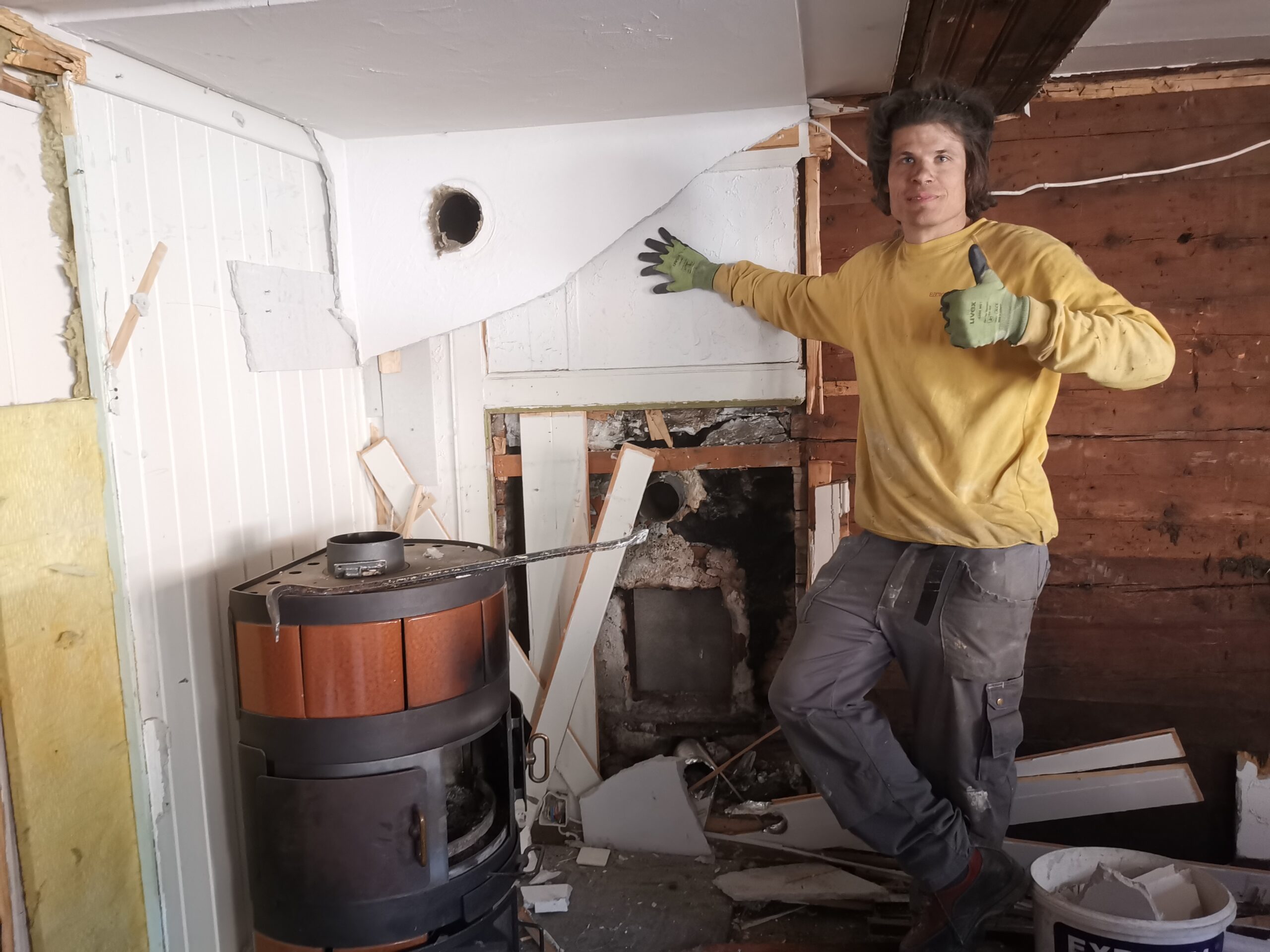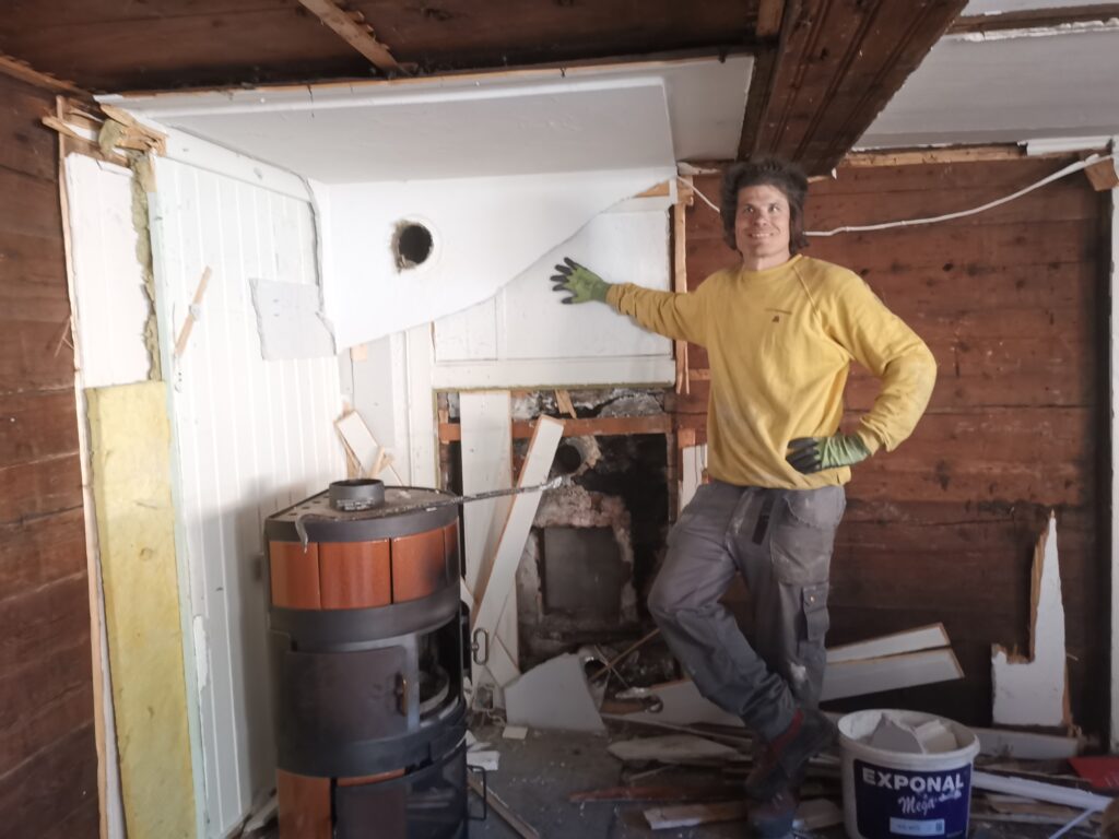 Sämtliche Innenwände welche mit viel Liebe in den 40er Jahren eingebaut wurden, haben wir nun entfernt. Warum? Ohne Isolation ist dieses Haus im Jahre 2020 nicht mehr bewohnbar. Aktuell ist das Haus unbeheizt. Das heisst es ist im inneren des Hauses kälter als draussen. Die Heizkosten würden ins unermessliche gehen.