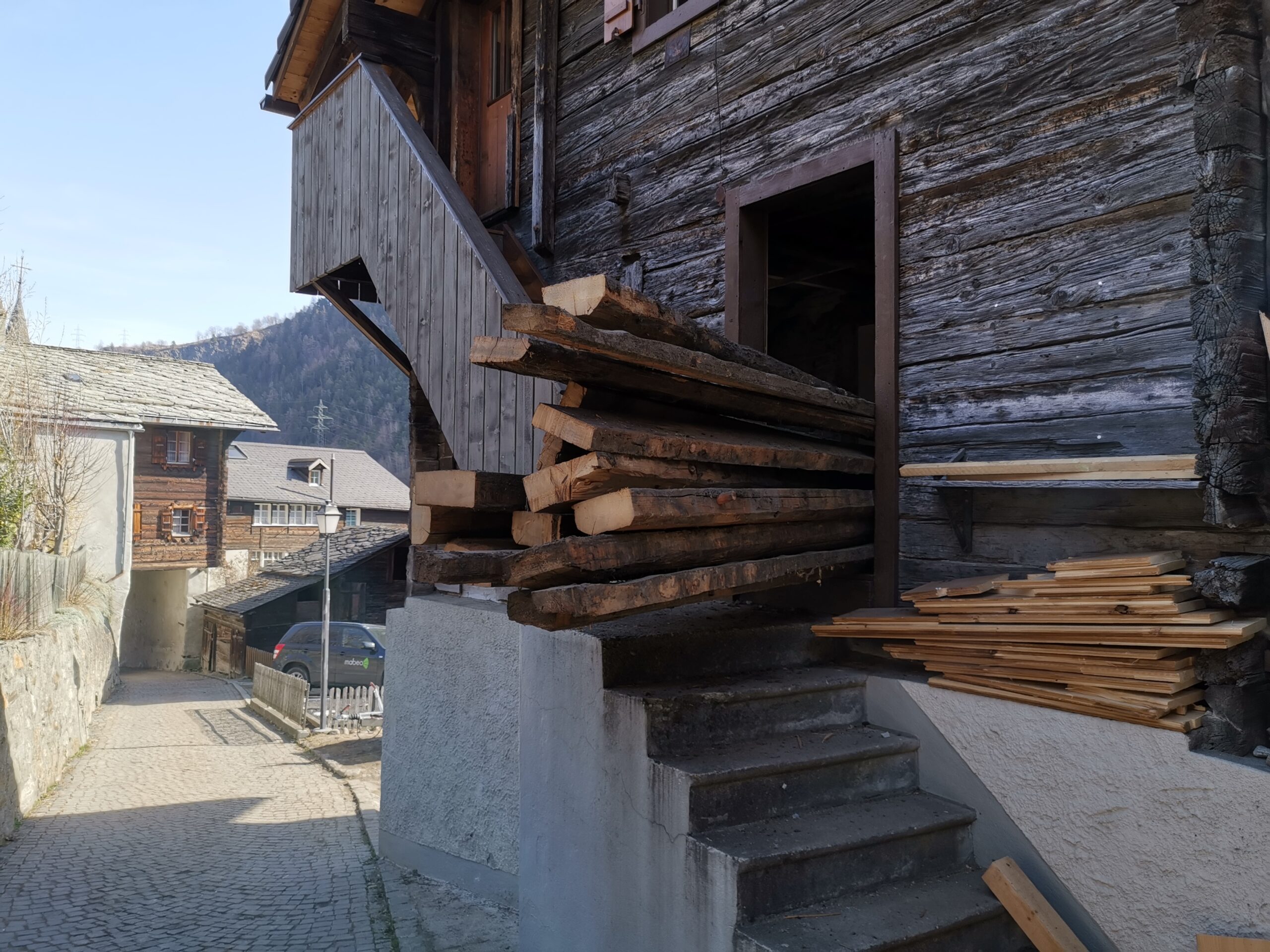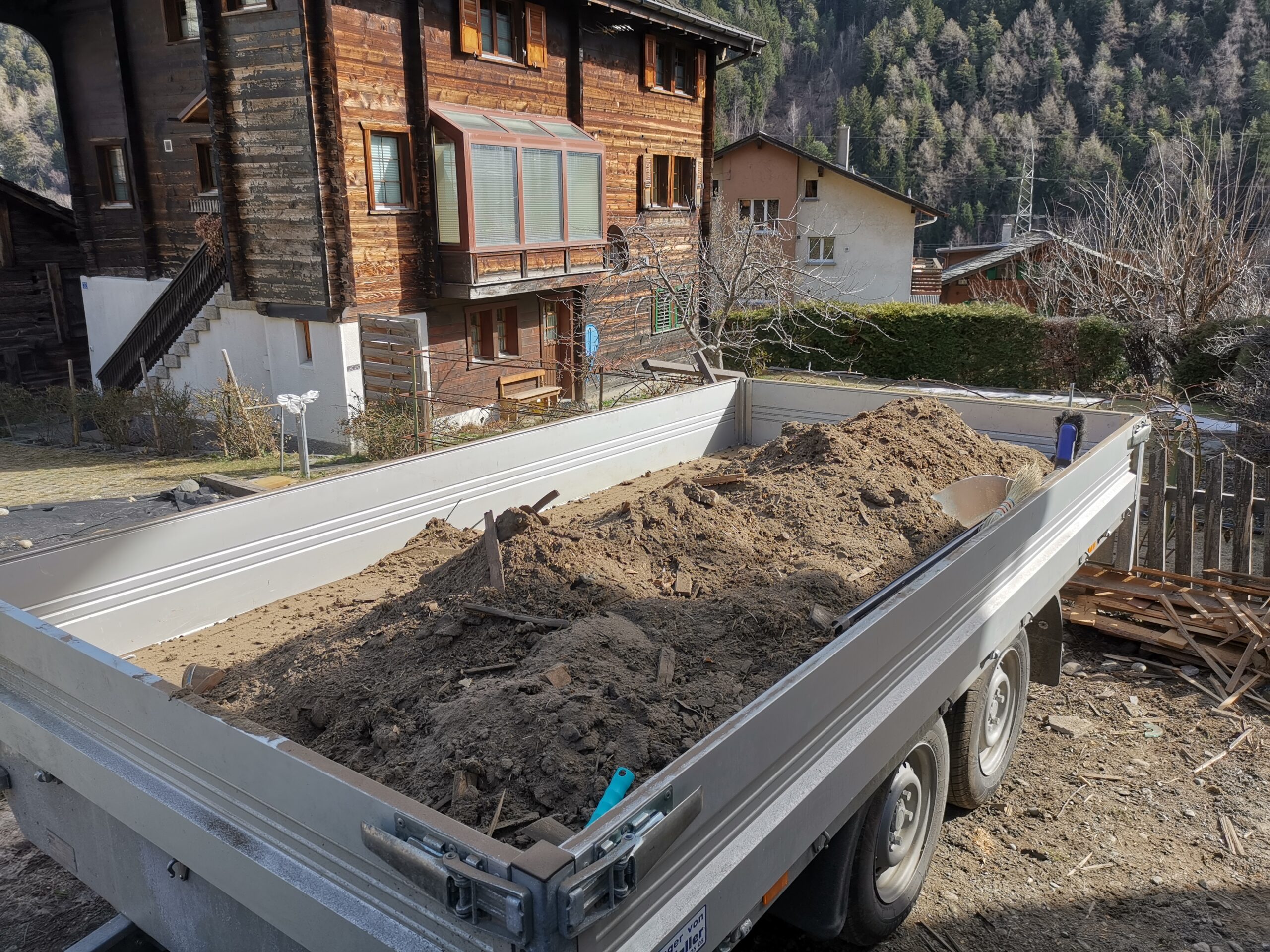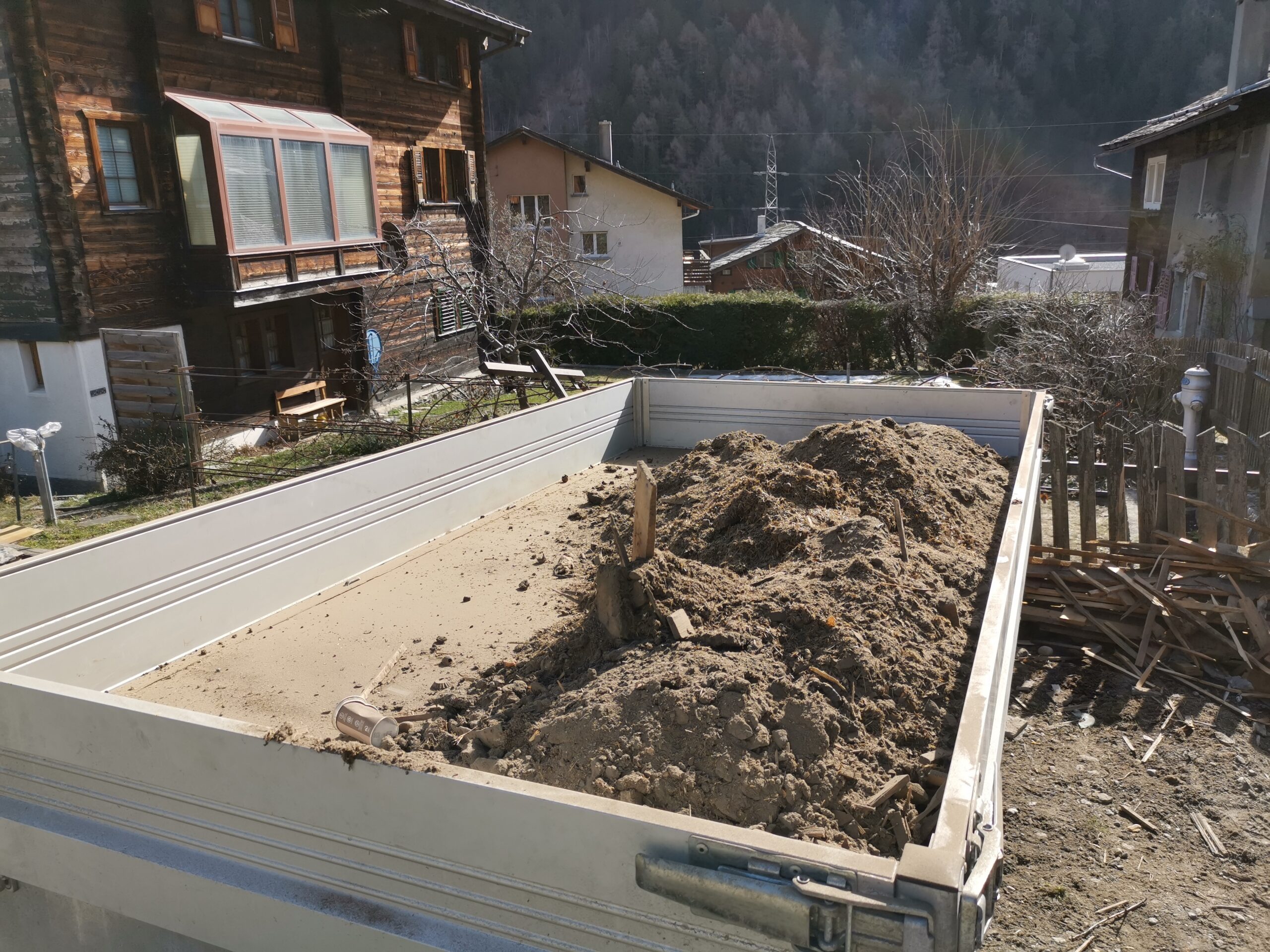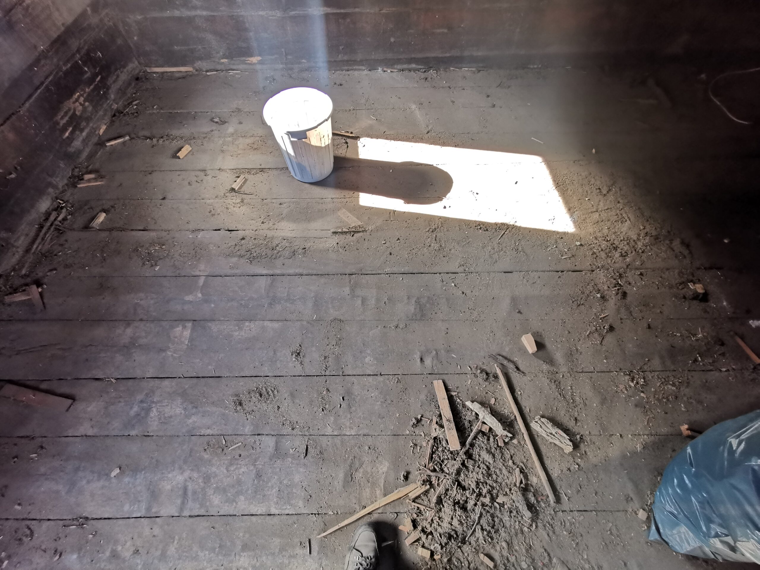 Unter dem fertigen Boden war eine durchgehende verdübelte Balkenlage. Zwischen dieser Balkenlage und der darunterliegenden Diele war mindestens 1m3 Dreck.