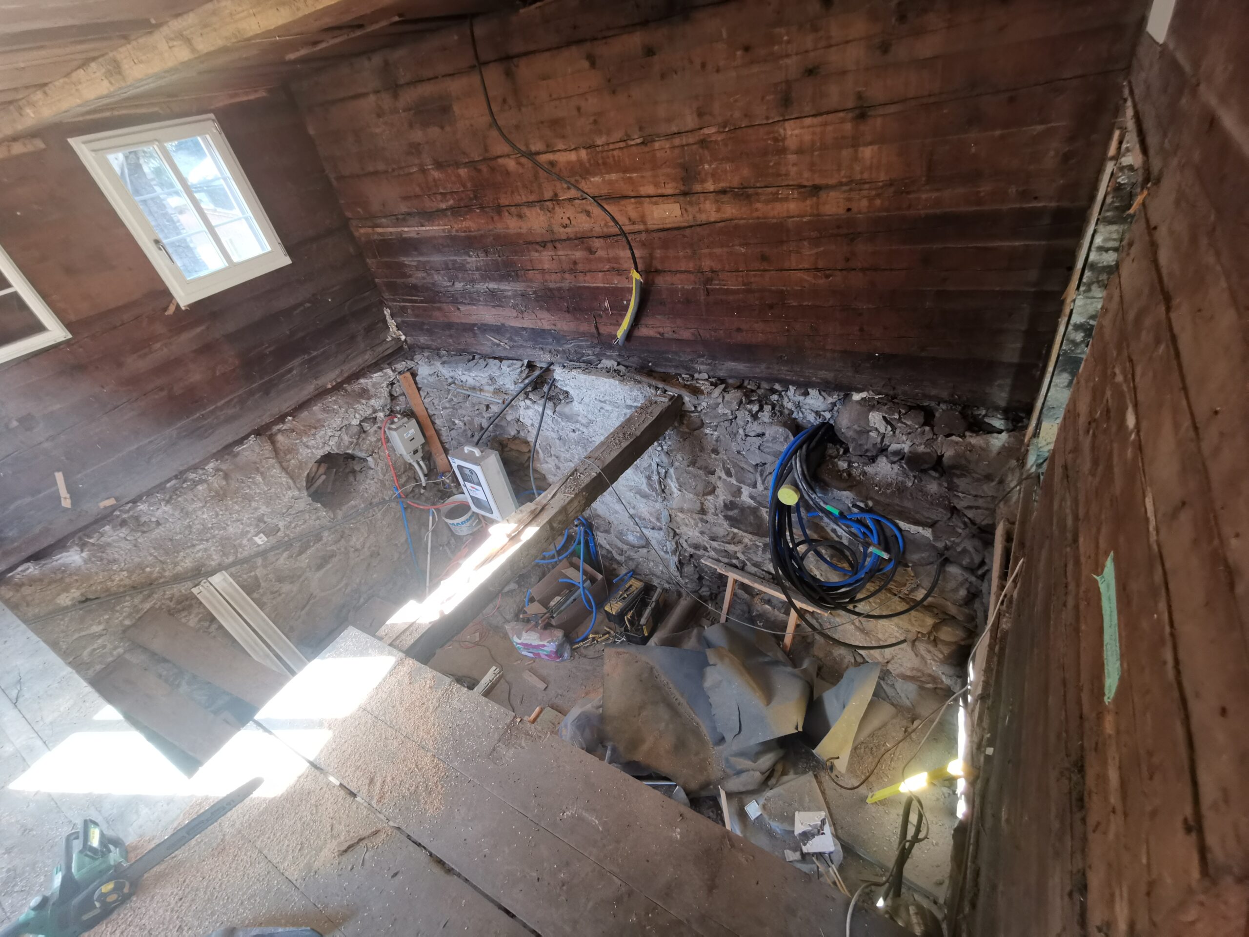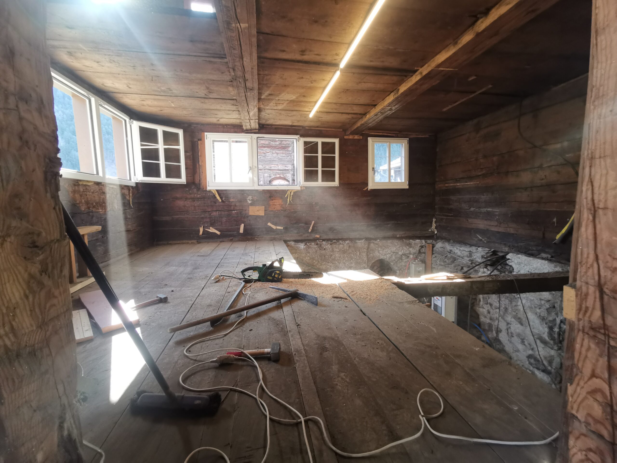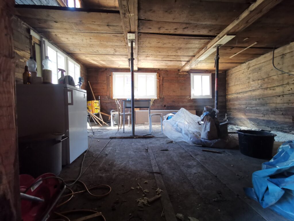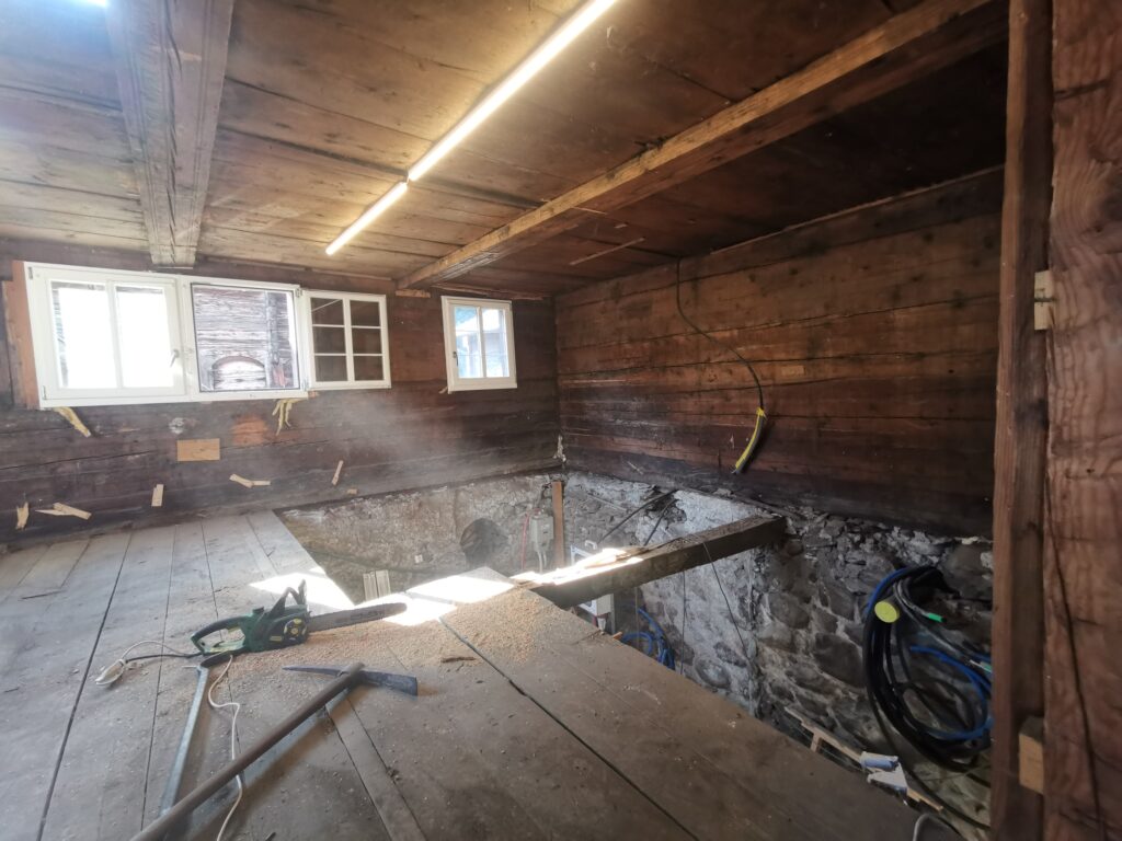 Lange habe ich darüber nachgedacht, ob ich diesen Boden drin lassen will. Ein Viertel davon war ziemlich Faul und verfressen. Ebenfalls eine grössere Unebenheit von 10cm.