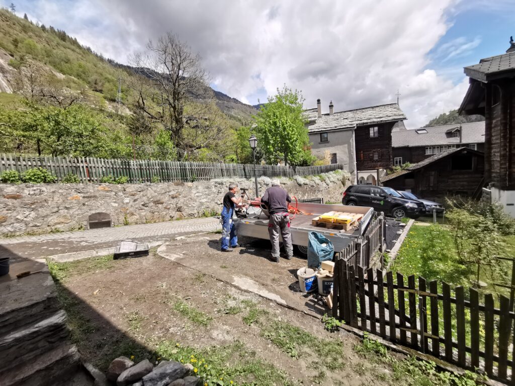 Pius und Moritz halfen tatkräftig mit. Mit dem grossen Mischer von Claudio ging das ganz schnell und gemütlich.