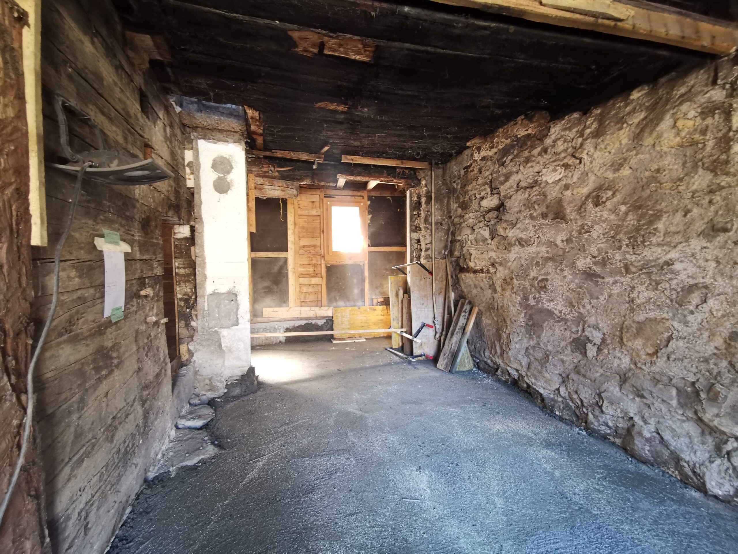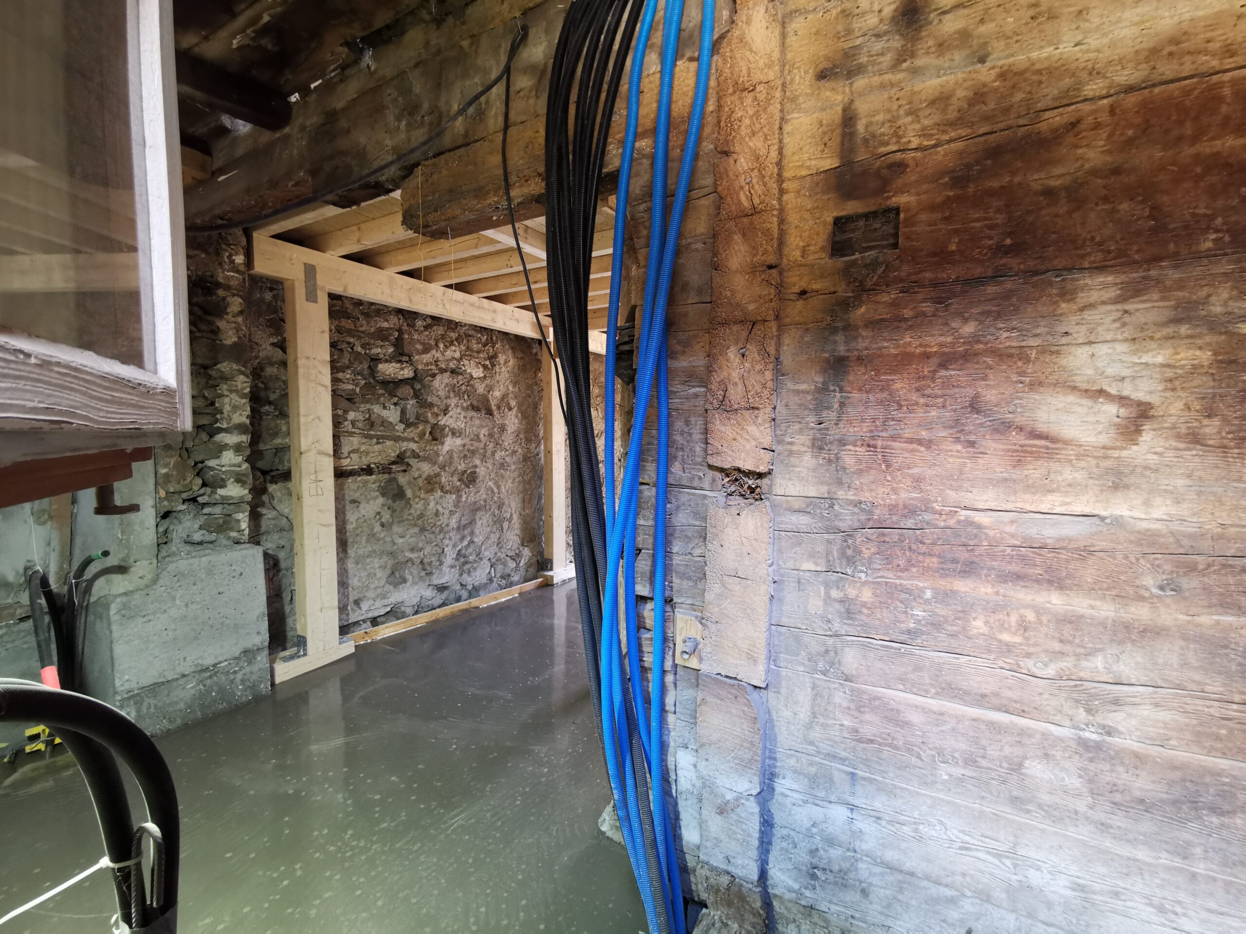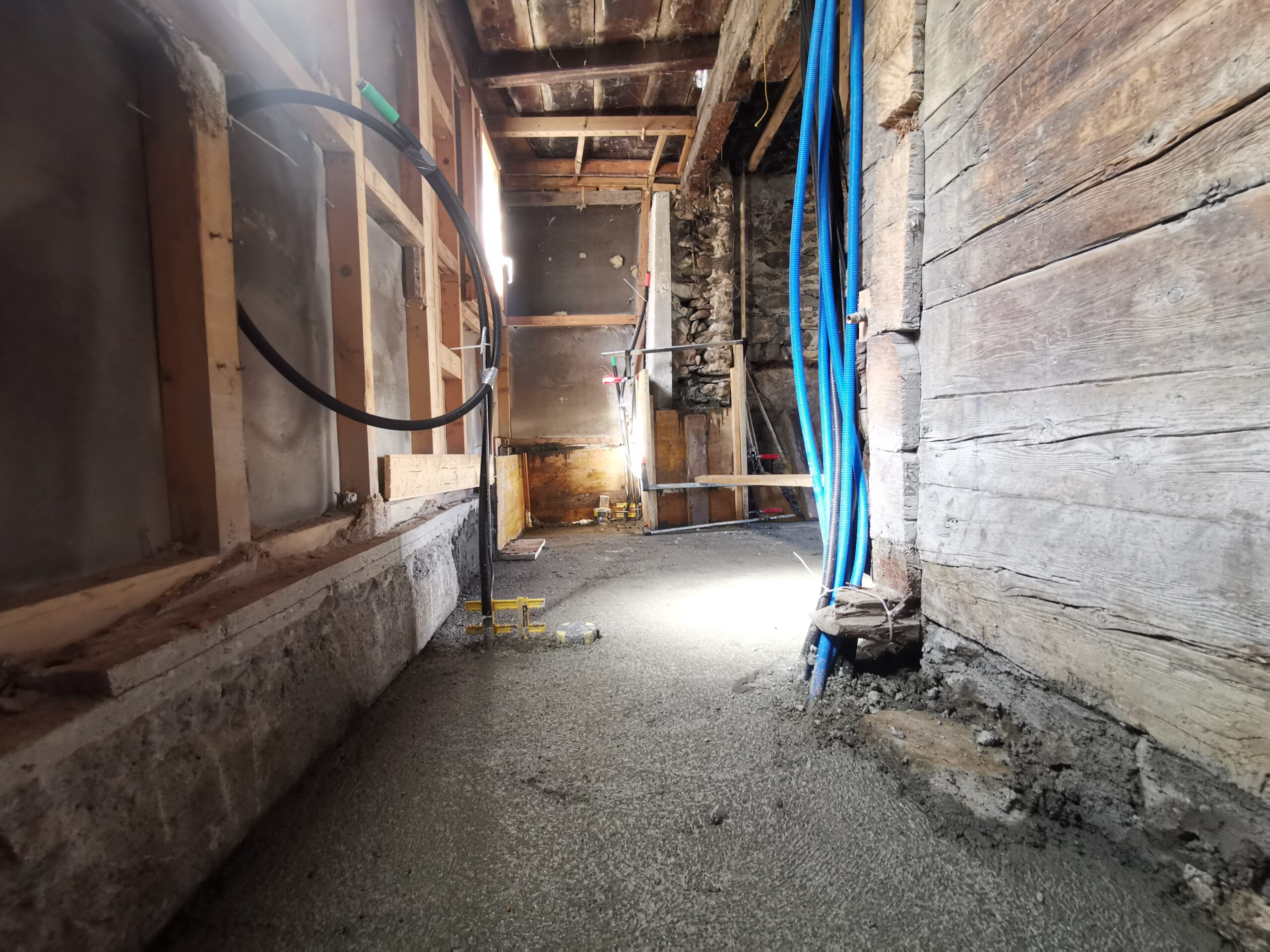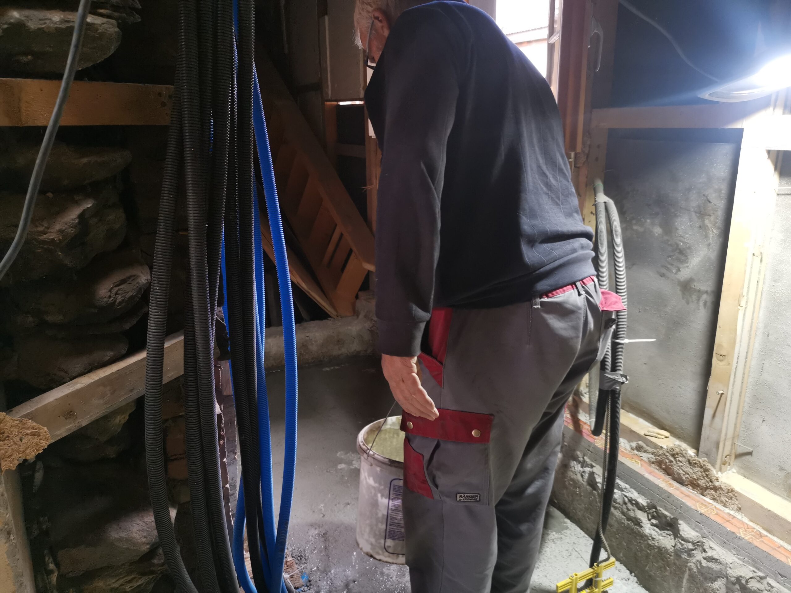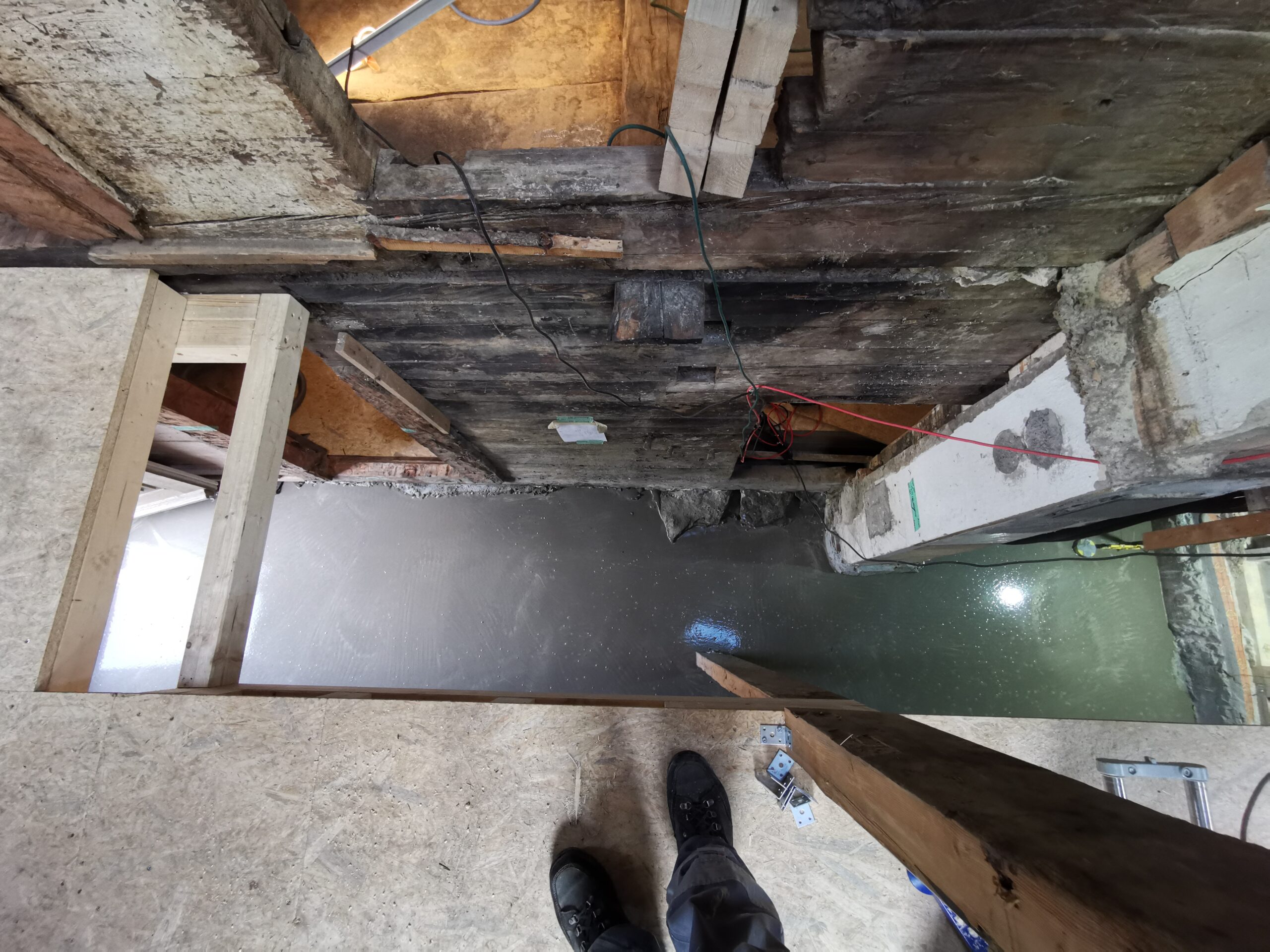 Der Betonboden ist für die Isolationsschicht nicht geeignet, es hat zu viele Höhendifferenzen. Deshalb habe ich den Boden mit SIKA-Floor Level 340 ausgegossen.