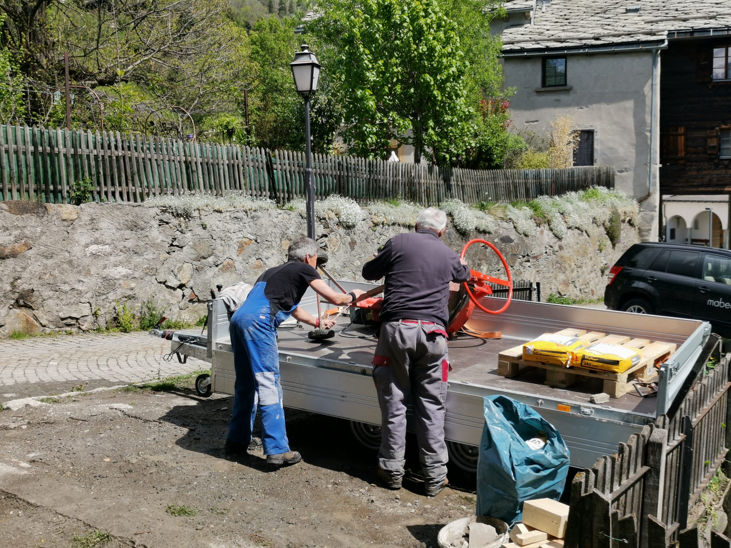 Pius und Moritz halfen tatkräftig mit. Mit dem grossen Mischer von Claudio ging das ganz schnell und gemütlich.